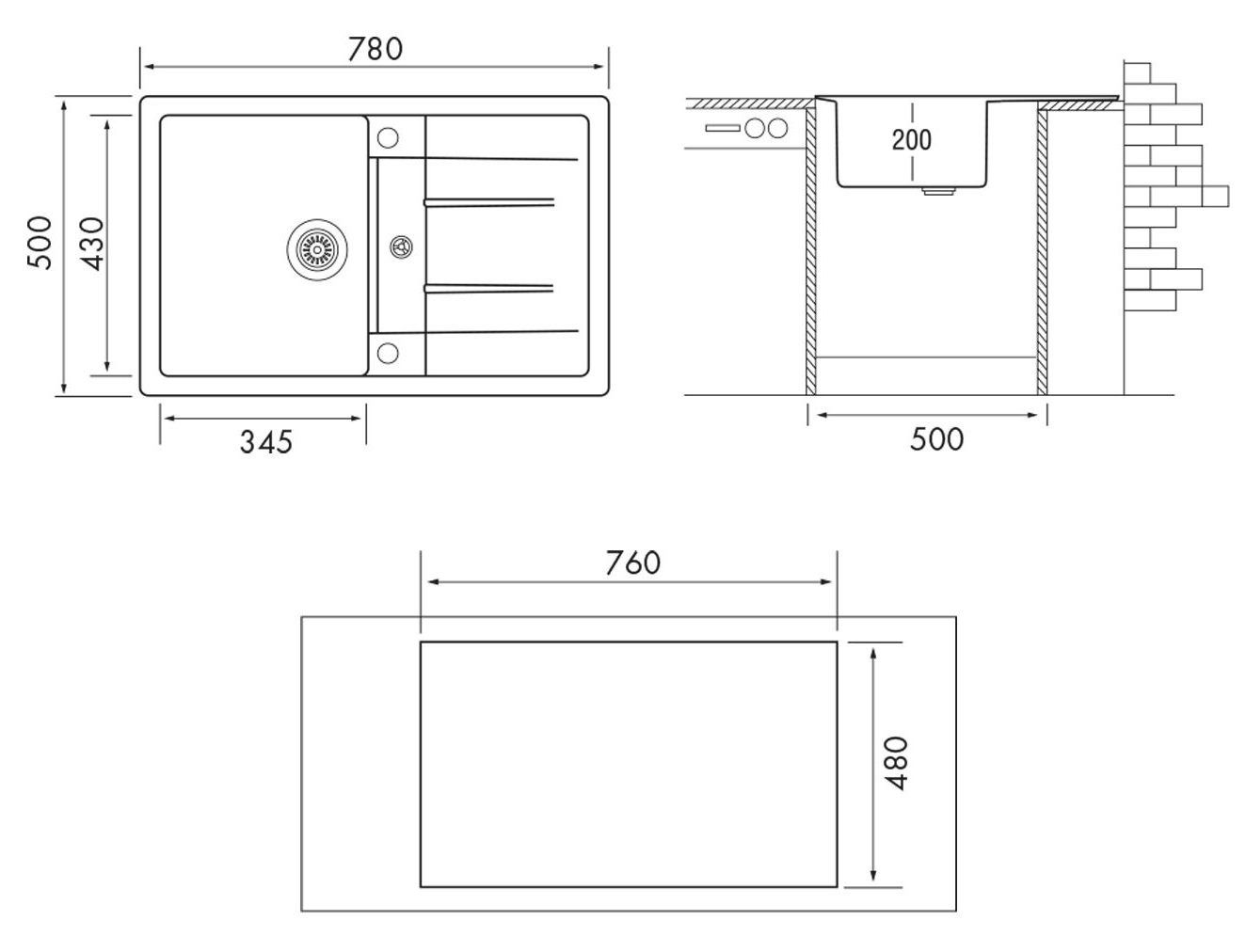 | Размер мойки | 780х500 мм |
