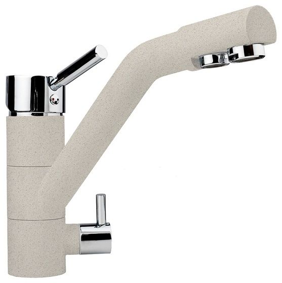 Оригинальный смеситель LM1394 — комбинированный смеситель для использования на кухнях, оснащенных проточной системой очистки воды. Он экономит место на мойке, поскольку совмещает в себе функции смесителя и крана для фильтрованной воды. Смеситель представлен в единой цветовой гамме с гранитными кухонными мойками LONGRAN.